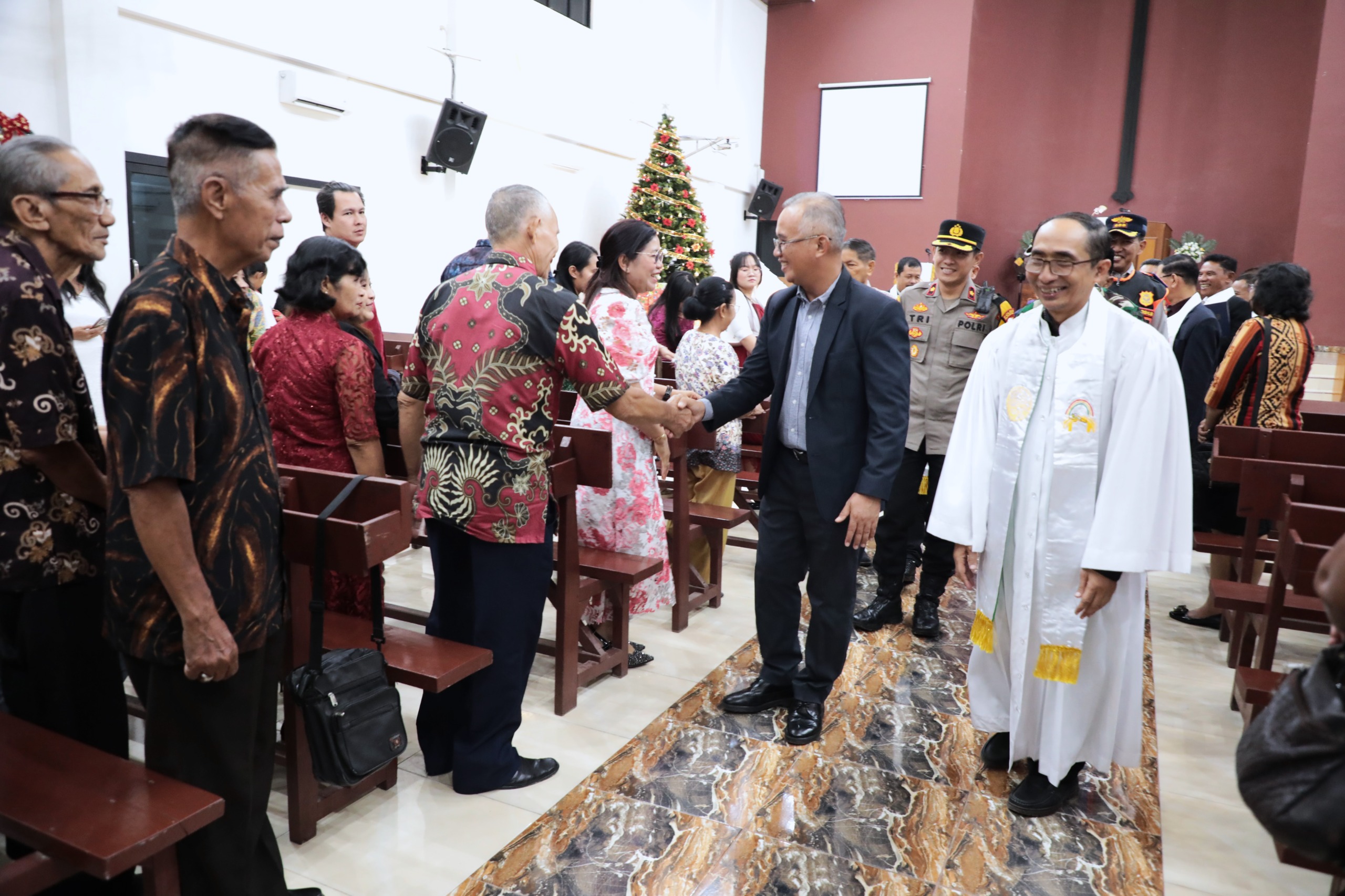Penjabat Wali Kota Singkawang, Drs. H. Sumastro, M.Si., bersama jajaran Forkopimda dan Perangkat Daerah terkait melaksanakan monitoring dan patroli bersama ke beberapa lokasi Gereja di Kota Singkawang, Selasa (24/12/2024).