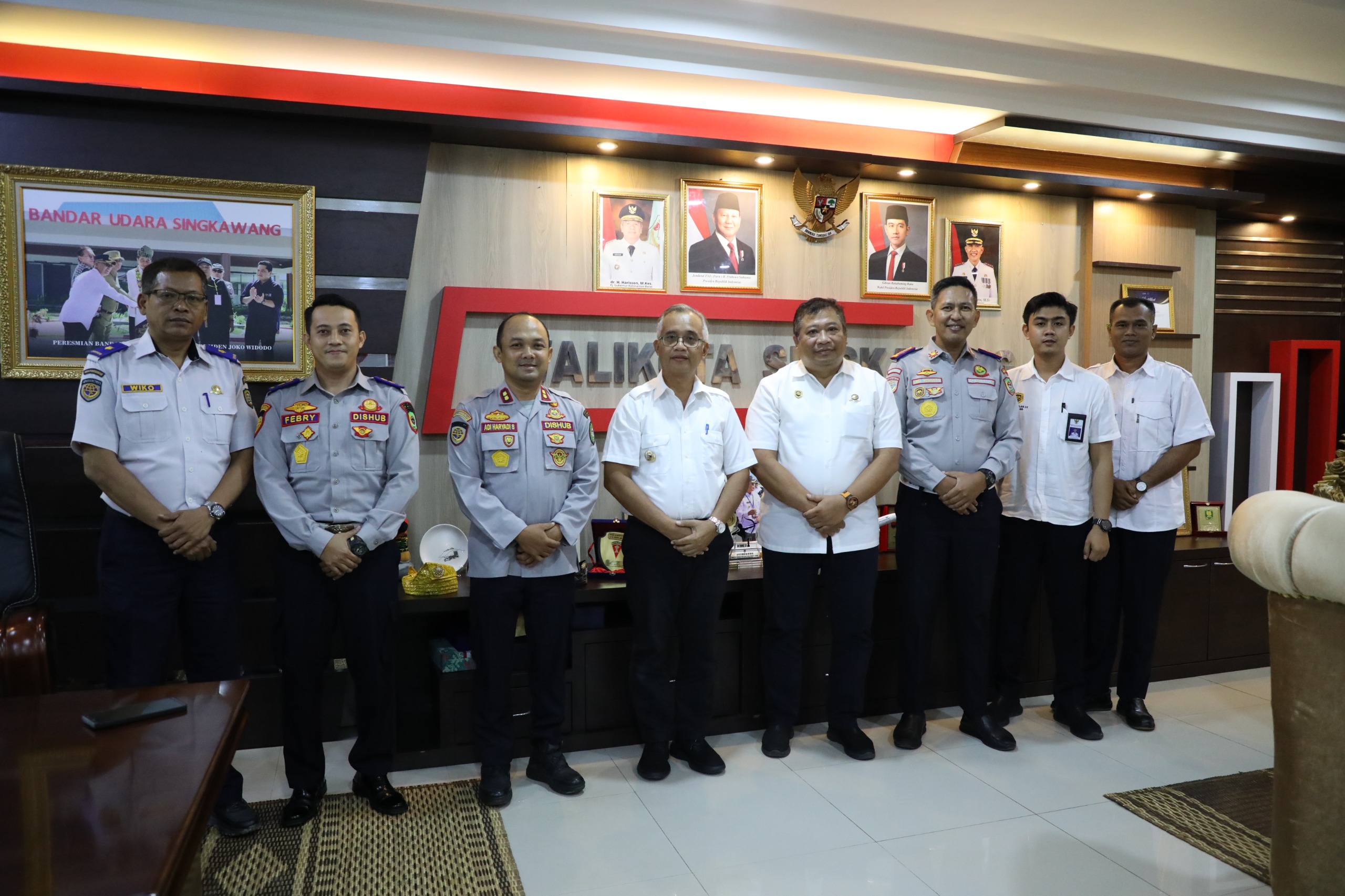Penjabat Wali Kota Singkawang, Drs. H. Sumastro, M.Si., didampingi Kepala Dinas Perhubungan menerima Kunjungan Kepala Balai Pengelola Transportasi Darat (BPTD) Kelas II Kalbar di Ruang Kerja Wali Kota, Rabu (15/01/2025).