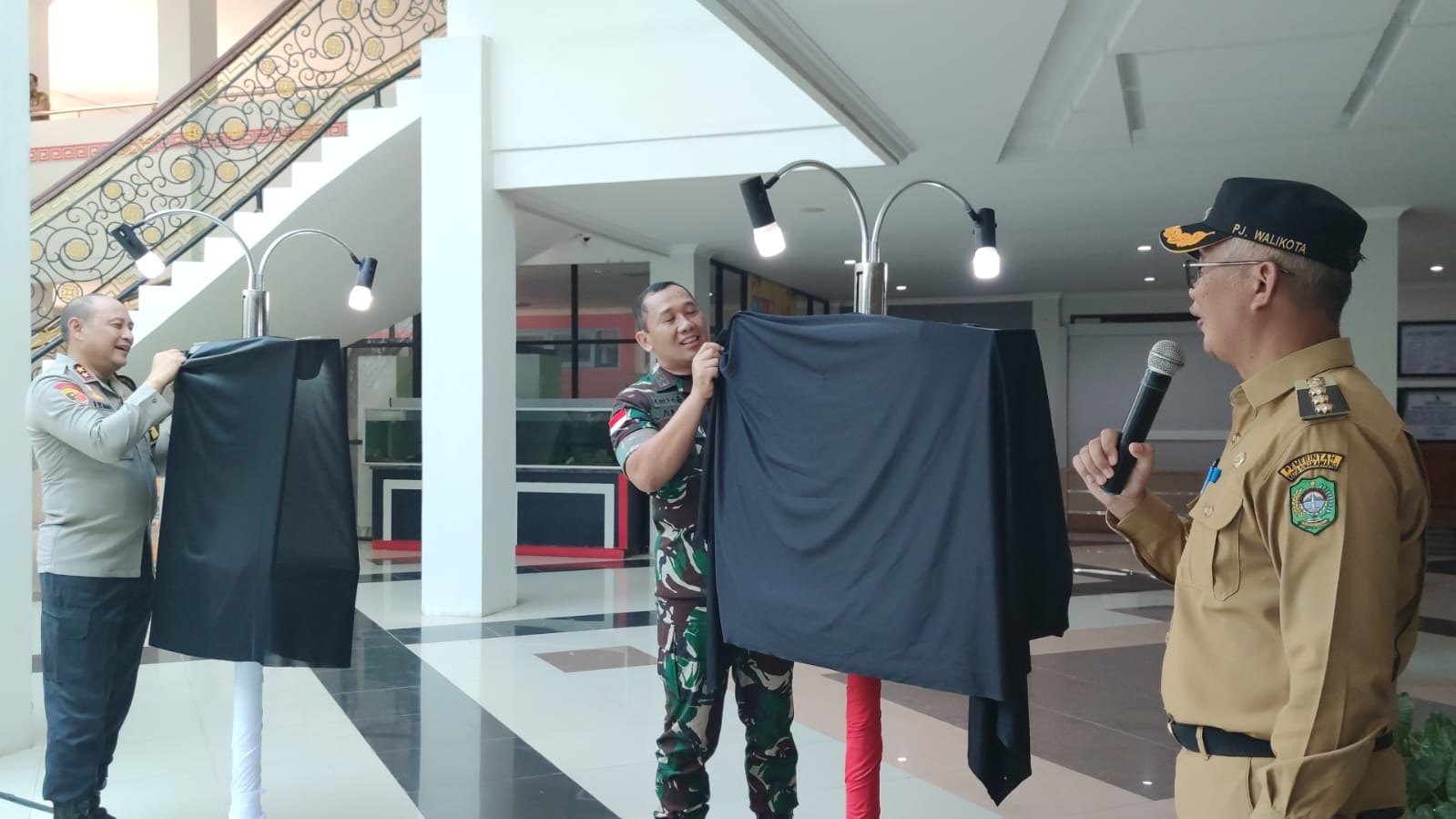Pj Wali Kota Singkawang, Drs. H. Sumastro, M.Si bersama Pangdam XII/Tanjungpura, Mayjen TNI Jamallulael, S.Sos., M.Si., dan Kapolda Kalbar Irjen Pol Pipit Rismanto, S.I.K., M.H., melakukan pembukaan foto-foto Tatung dari masa ke masa di Kantor Wali Kota Singkawang pada Kamis, (11/02/2025).