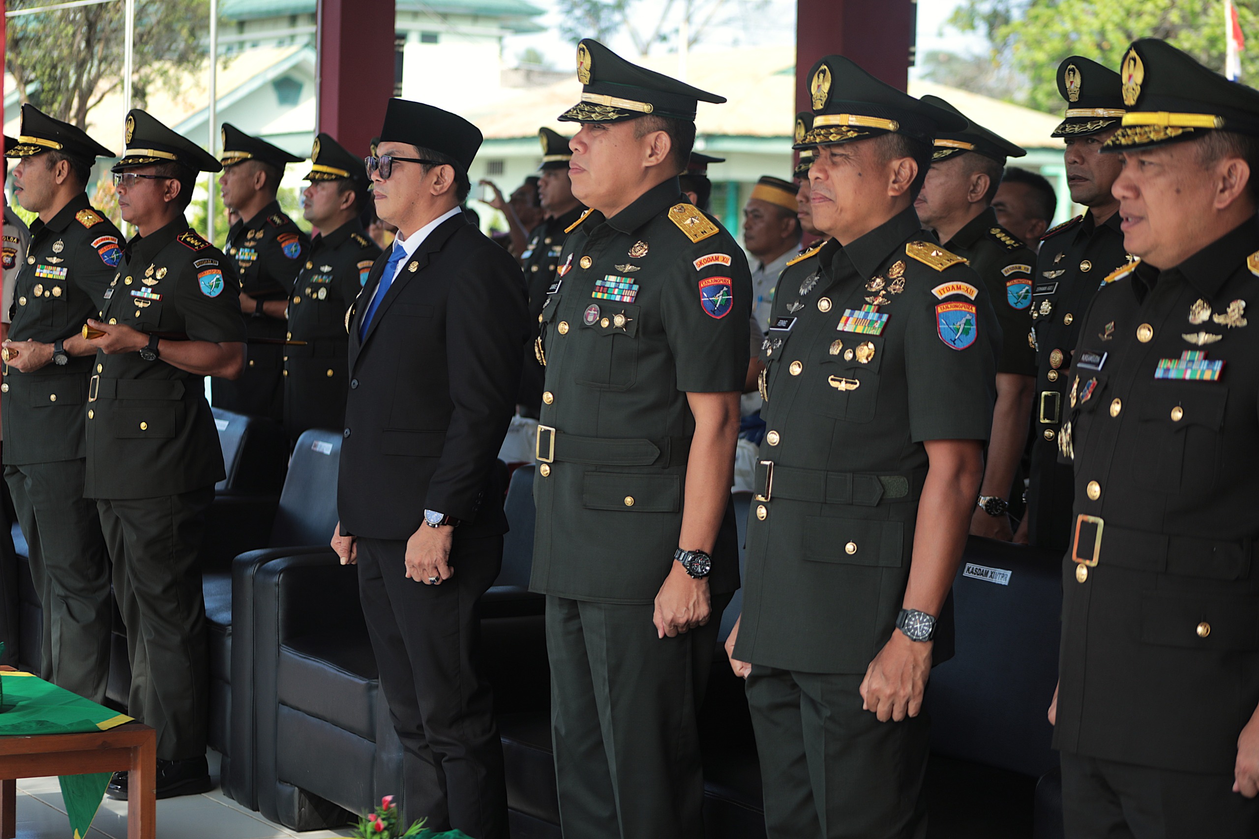 Wakil Wali Kota Singkawang Muhammadin, S.E., M.H, menghadiri Upacara Penutupan Pendidikan Pertama Bintara (Dikmaba)TNI AD Gelombang II TA. 2024 yang dipimpin oleh Pangdam XII/Tanjungpura Mayjen TNI Jamallulael, S.Sos., M.Si., di Lapangan Sapta Marga Rindam XII/TPR, Kamis (27/03/2025).