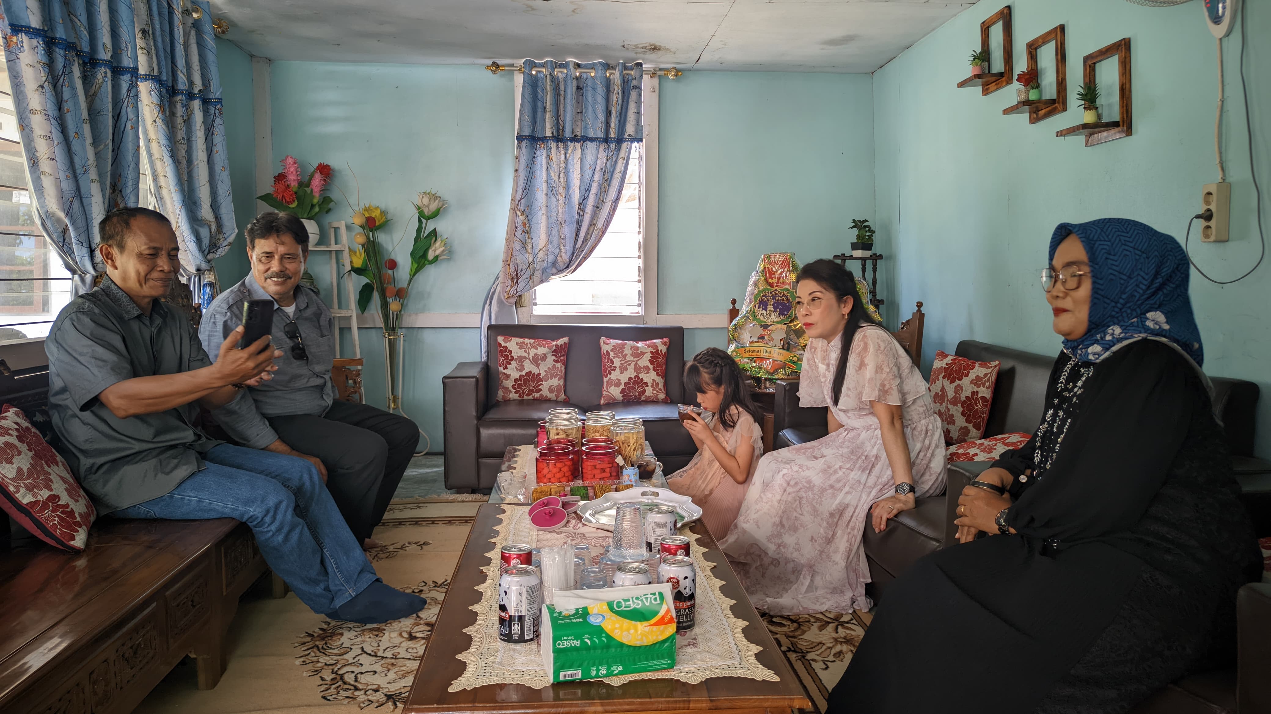 Wali Kota Singkawang, Tjhai Chui Mie beserta keluarga menghadiri Open House Wakil Ketua Dewan Perwakilan Rakyat Daerah, Mubarak, di Posko Abah Mubarak Jalan Cempaka Putih, Singkawang Tengah, Rabu (02/04/2025).