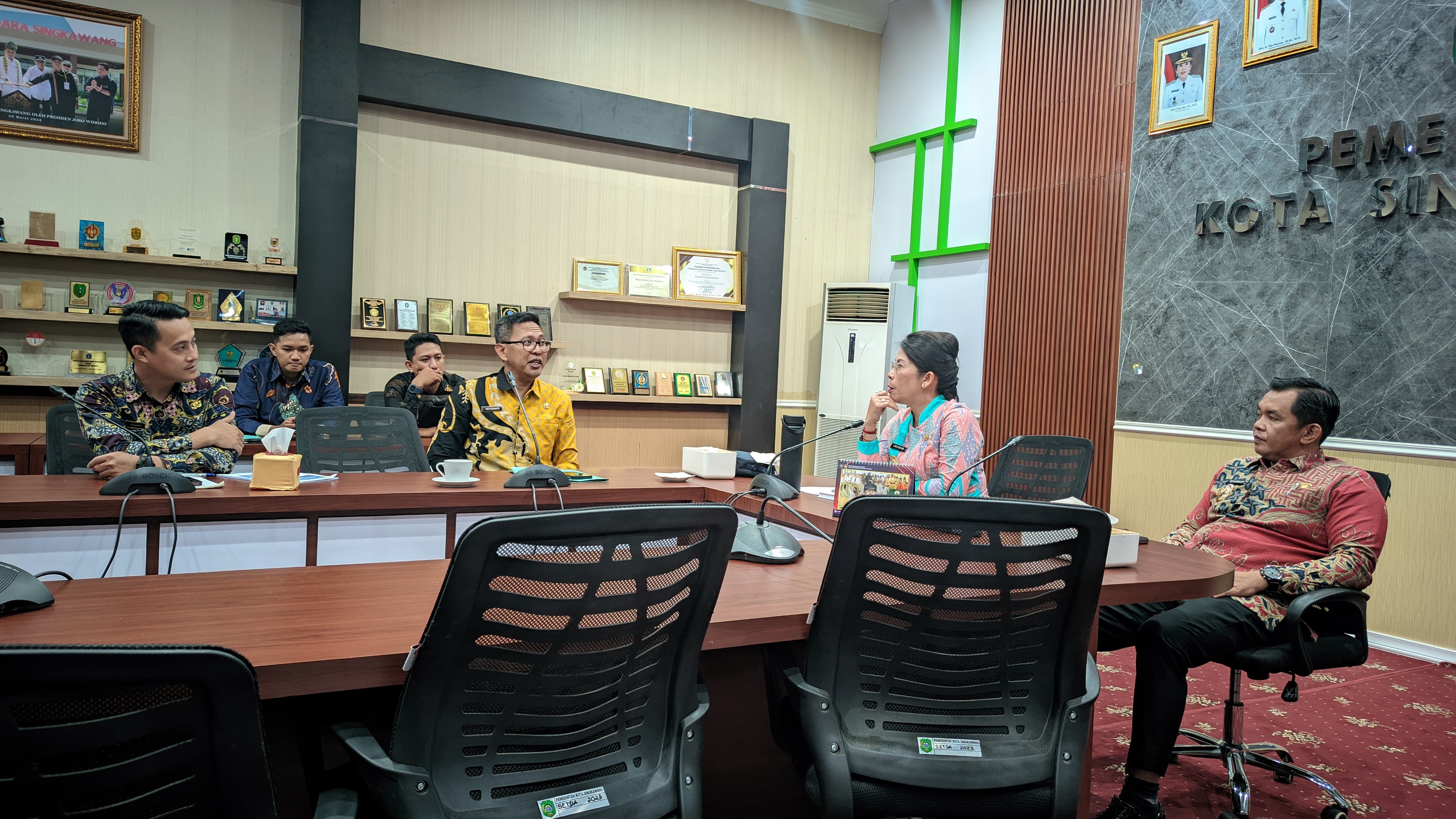 Wali Kota Singkawang, Tjhai Chui Mie, didampingi Wakil Wali Kota, Muhammadin, memimpin Rapat Kerja bersama Dinas Perhubungan di Ruang Rapat Wali Kota, Kamis (10/04/2025).