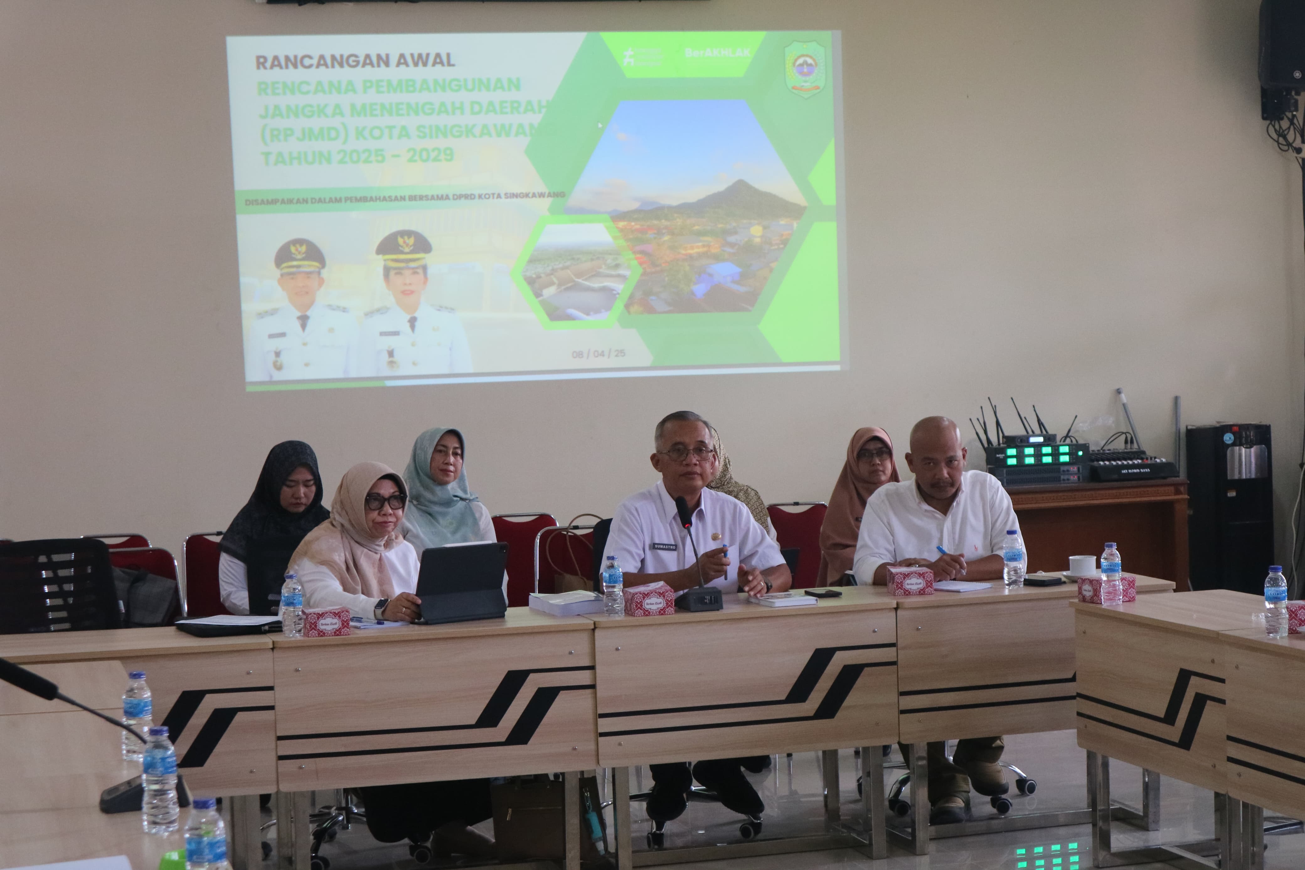 Sekretaris Daerah Kota Singkawang Drs. H. Sumastro, M.Si mewakili Pemerintah Kota Singkawang menghadiri Pembahasan Rancangan Awal Rencana Pembangunan Jangka Menengah Daerah (RPJMD) Kota Singkawang tahun 2025-2029 bersama PANSUS II DPRD Kota Singkawang yang dilaksanakan di Ruang Rapat AKD DPRD Kota Singkawang, Rabu (09/04/2025). Turut hadir dalam kegiatan tersebut Bappeda Kota Singkawang beserta jajaran dan Kepala Bagian Hukum Setda Kota Singkawang.