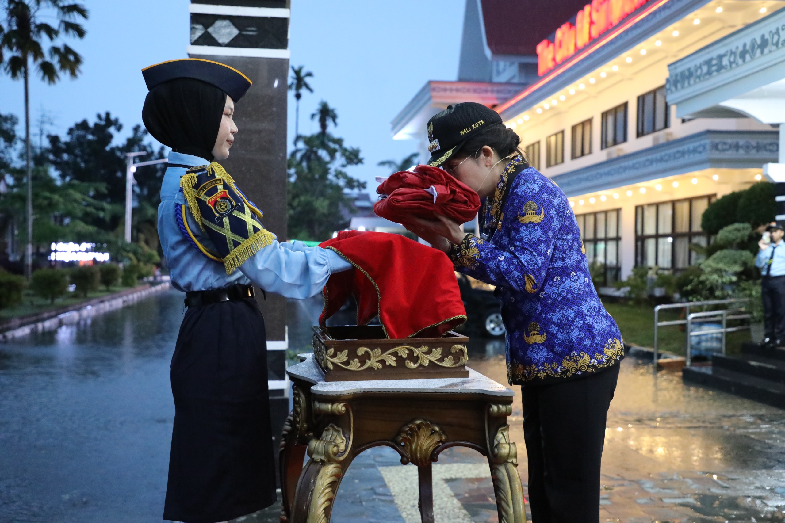 Wali Kota Singkawang, Tjhai Chui Mie (TCM) memimpin langsung Upacara Parade Senja yang dilaksanakan sebagai bentuk penghormatan terhadap Sang Saka Merah Putih serta penguatan nilai-nilai nasionalisme di Halaman Kantor Wali Kota, Kamis (17/04/2025).