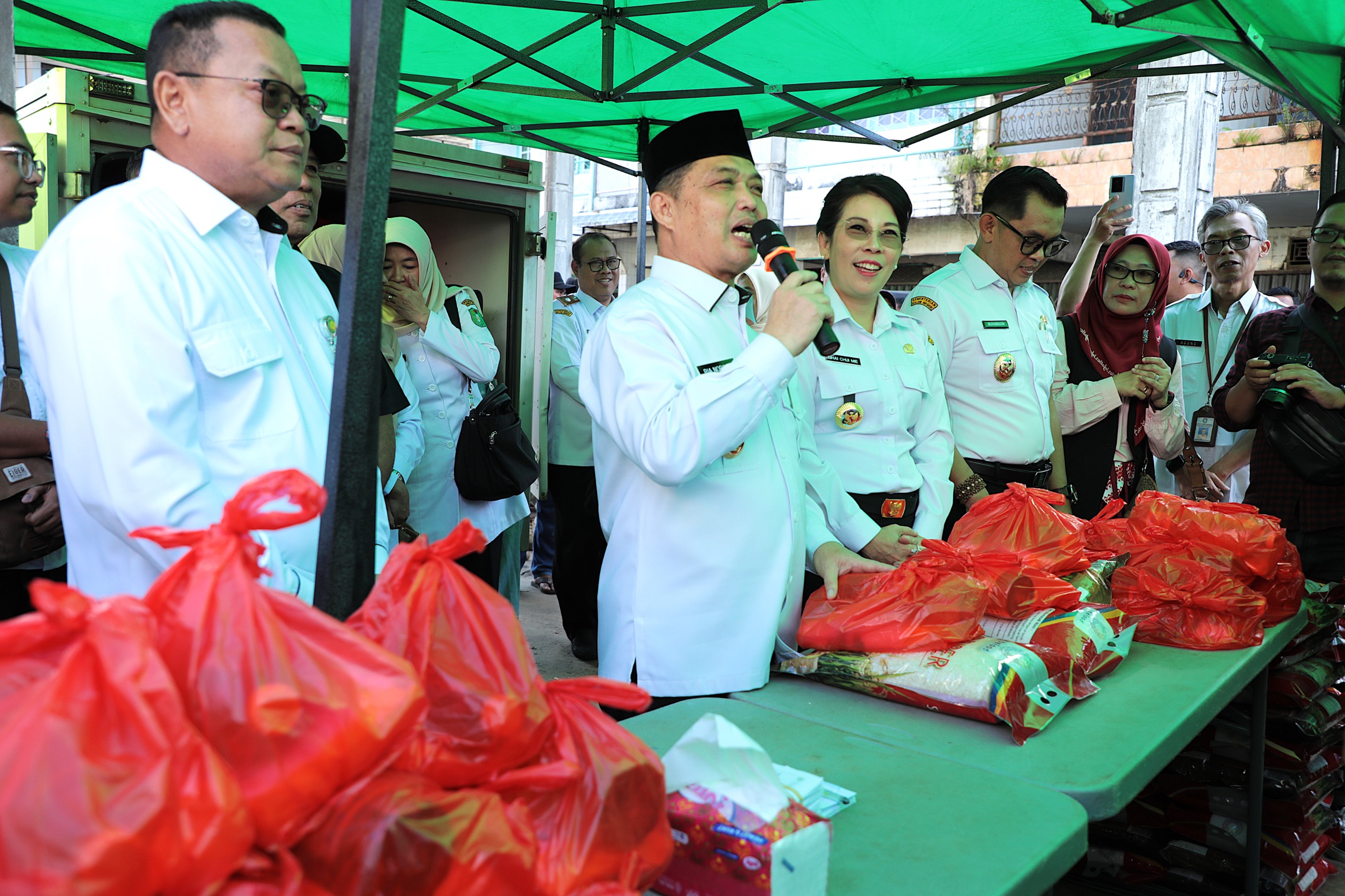 Pemerintah Provinsi Kalimantan Barat bersama Pemerintah Kota Singkawang menggelar kegiatan operasi pasar bersubsidi sebagai upaya konkret untuk menekan inflasi daerah dan menjaga stabilitas harga bahan pokok di tengah masyarakat. Dalam kesempatan ini, Gubernur Kalimantan Barat dan Wali Kota Singkawang turut hadir langsung untuk menyerahkan paket sembako secara simbolis kepada masyarakat.