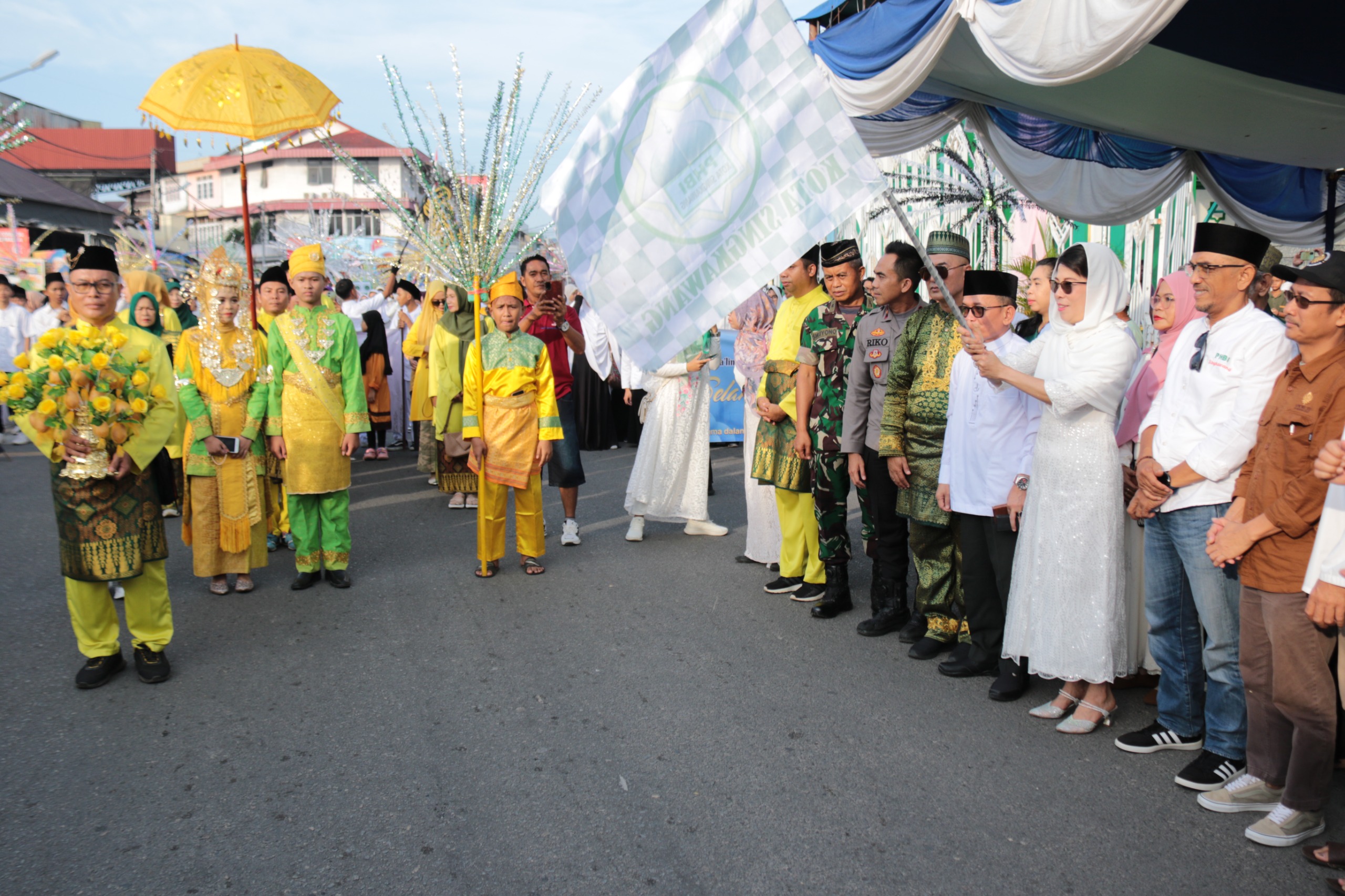 Wali Kota Singkawang, Tjhai Chui Mie, secara resmi melepas peserta pawai Tahun Baru Islam 1447 Hijriah yang bertitik kumpul di Masjid Raya Kota Singkawang, Jumat (27/06/2025).