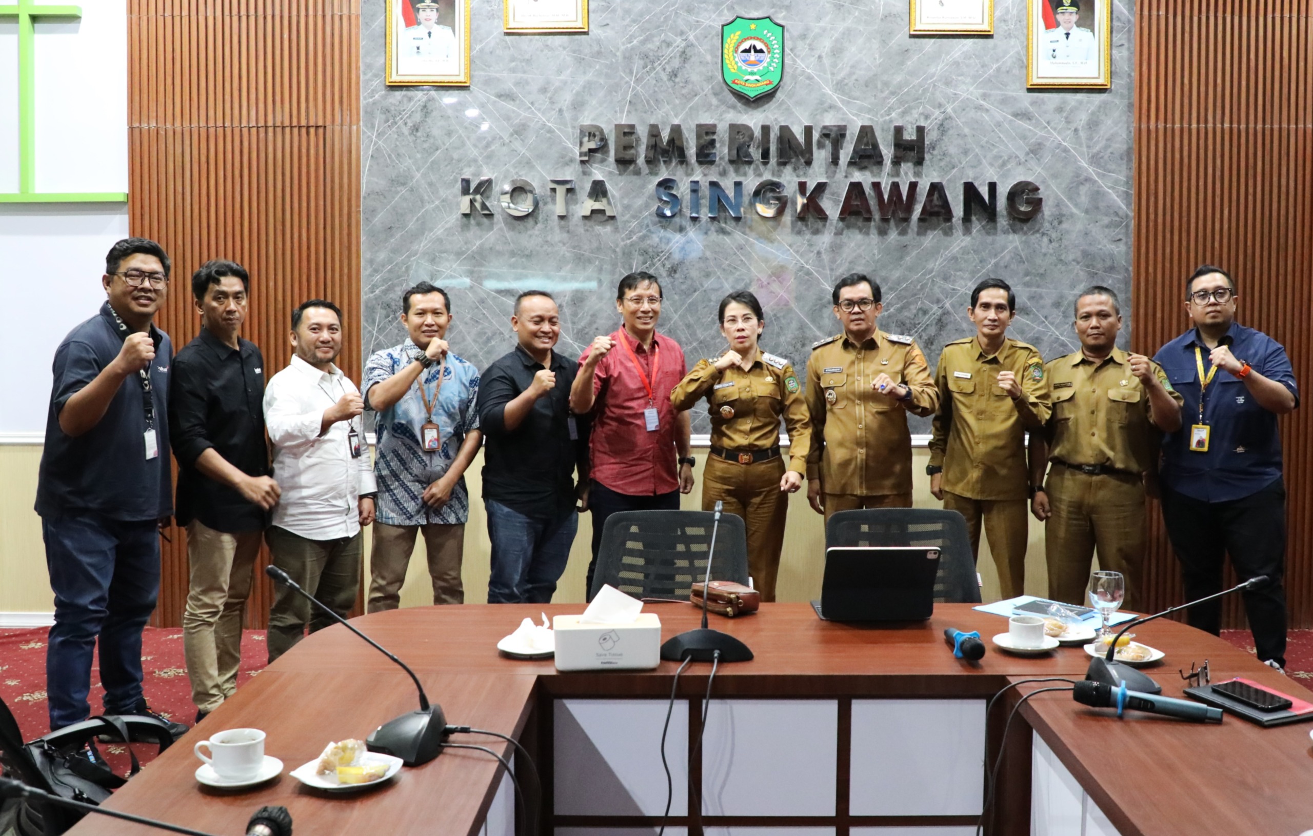 Wali Kota Singkawang, Tjhai Chui Mie, bersama Wakil Wali Kota, Muhammadin, menerima audiensi jajaran Manajemen Indosat Wilayah Kalimantan di Ruang Rapat Wali Kota, Senin (07/07/2025).