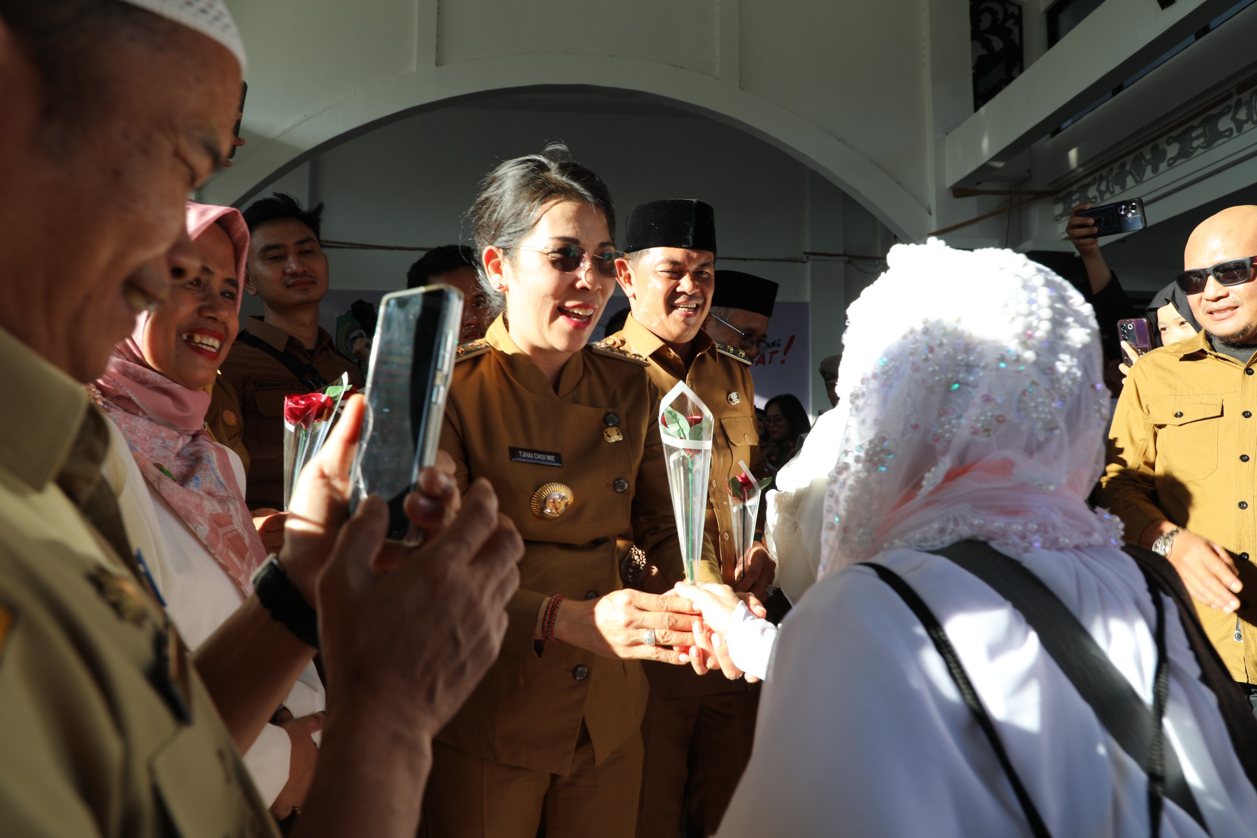 Wali Kota Singkawang, Tjhai Chui Mie, didampingi Wakil Wali Kota Singkawang, Muhammadin, serta jajaran Pemerintah Kota Singkawang dan para Kepala Organisasi Perangkat Daerah (OPD) terkait, menyambut kepulangan 109 jamaah haji asal Kota Singkawang di halaman Kantor Wali Kota Singkawang, Selasa (8/7/2025) sore.
