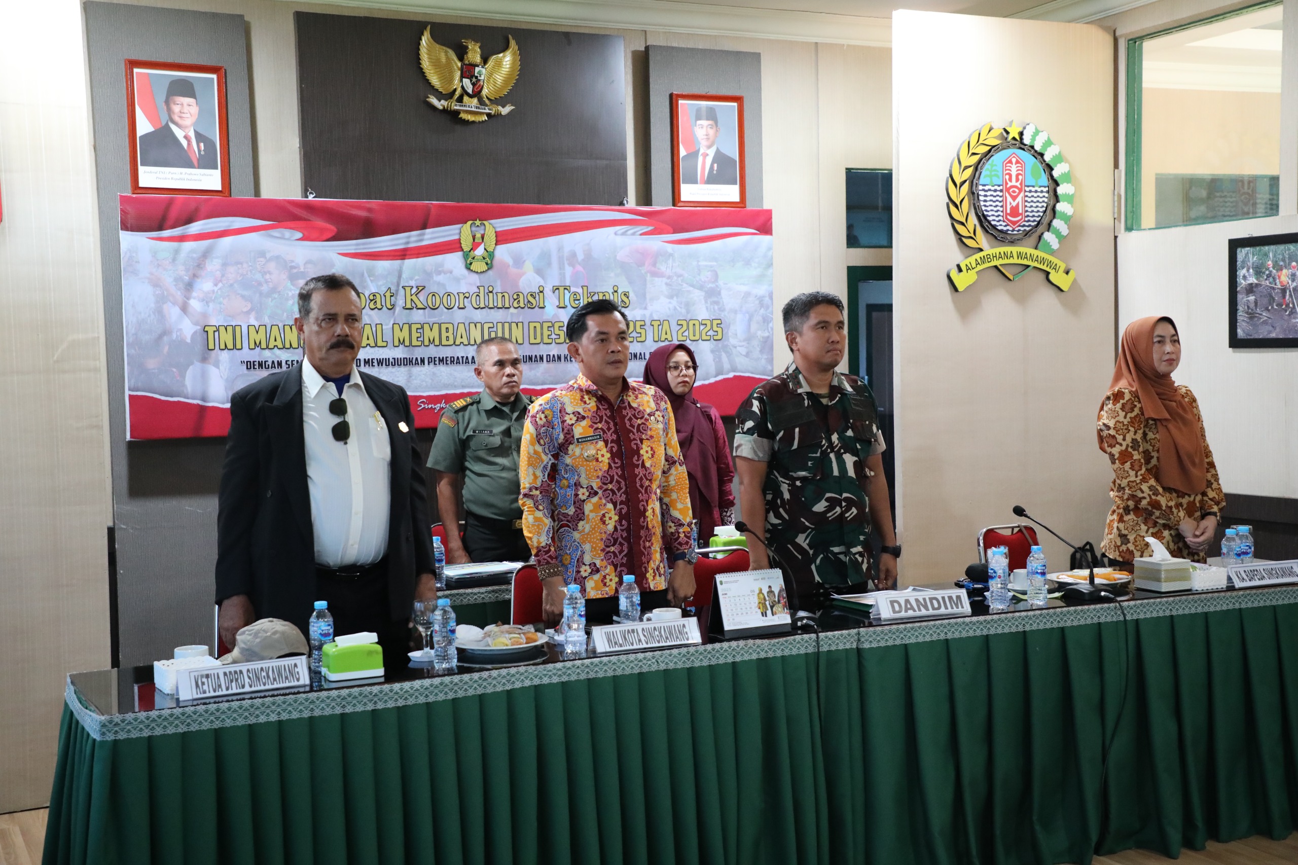 Wakil Wali Kota Singkawang Muhammadin, menghadiri kegiatan Rapat Koordinasi Teknis dalam rangka laporan kesiapan pelaksanaan TNI Manunggal Membangun Desa (TMMD) ke-125 Tahun Anggaran 2025. Kegiatan tersebut berlangsung di Ruang Vicon Makodim 1202/Skw pada Kamis (10/07/2025).