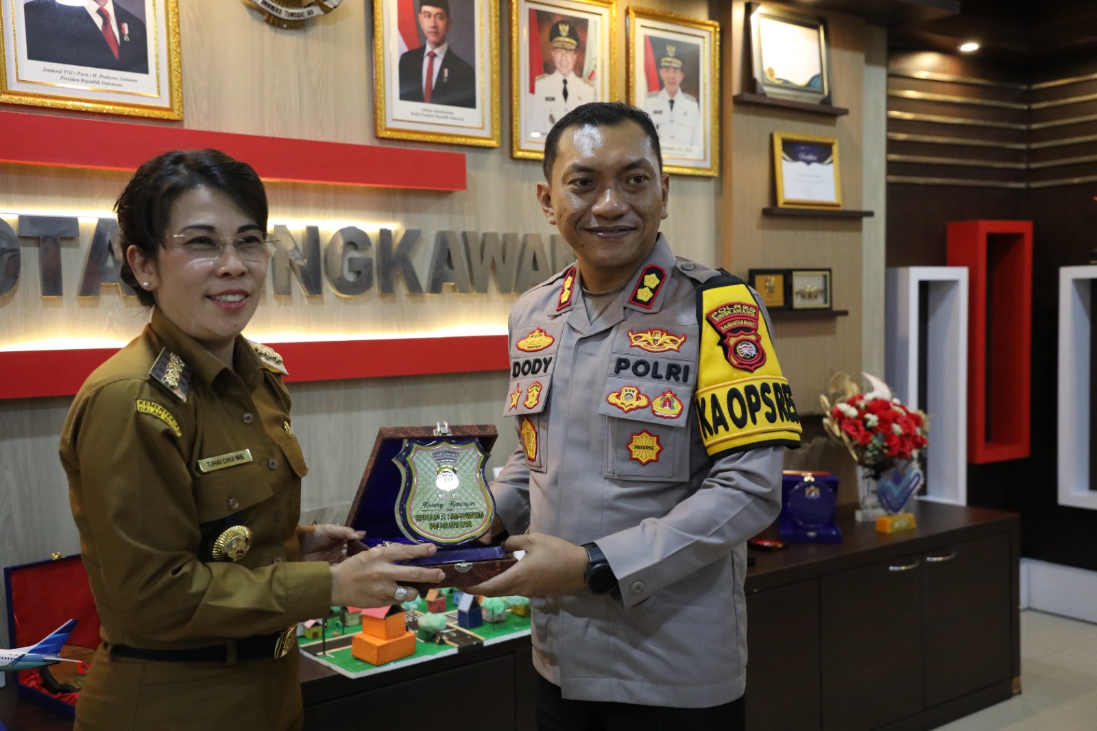 Wali Kota Singkawang, Tjhai Chui Mie, menerima kunjungan silaturahmi Kapolres Singkawang yang baru, AKBP Dody Yudianto Arruan, S.I.K., beserta jajaran, di ruang kerja Wali Kota, Senin (21/07/2025).
