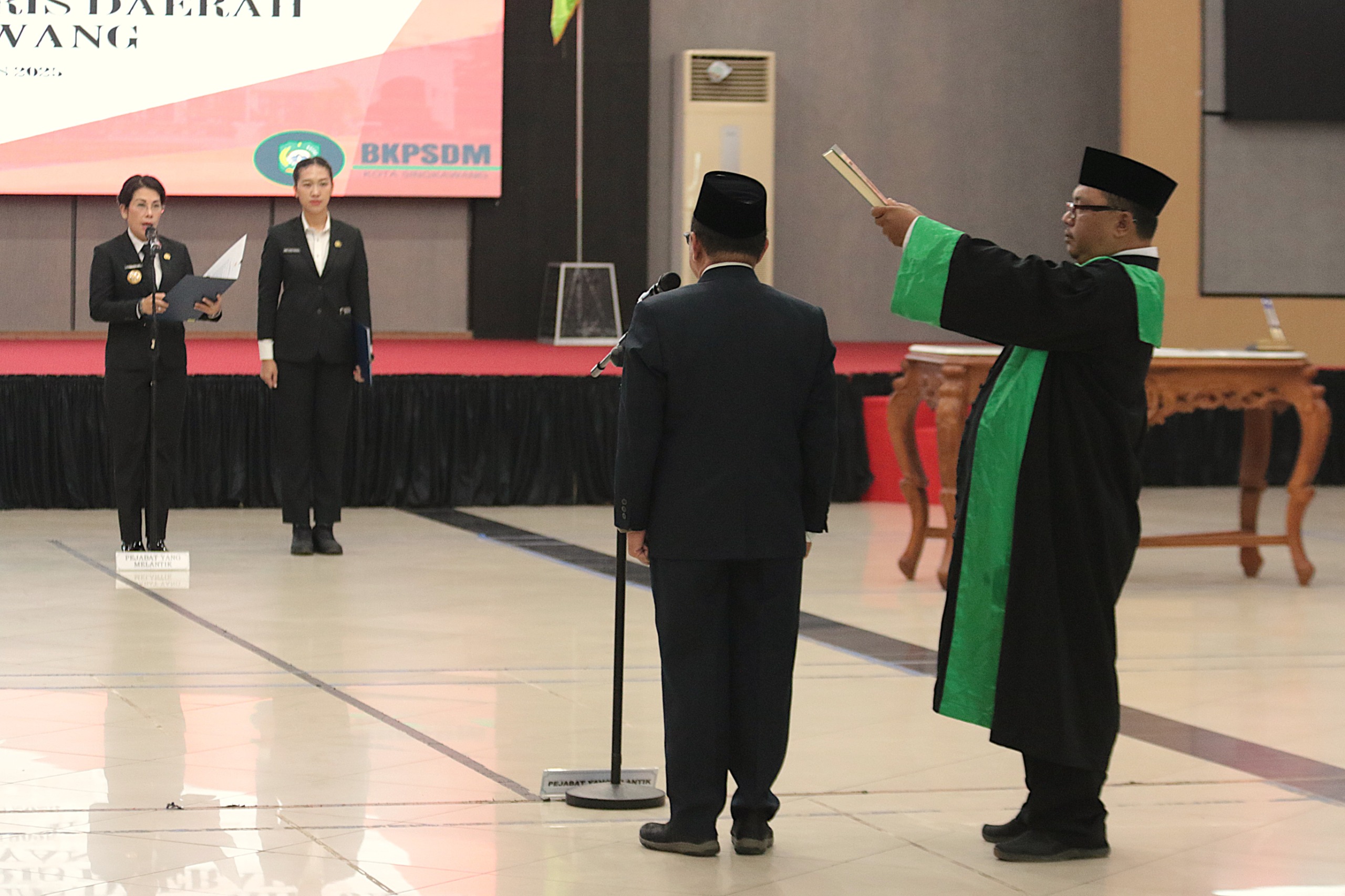 Wali Kota Singkawang, Tjhai Chui Mie, secara resmi Melantik dan Mengambil Sumpah/janji Dwi Putra Sumarna, S.T., M.T. sebagai Penjabat Sekretaris Daerah Kota Singkawang, yang digelar di Balairung Kantor Wali Kota, Senin (04/08/2025).