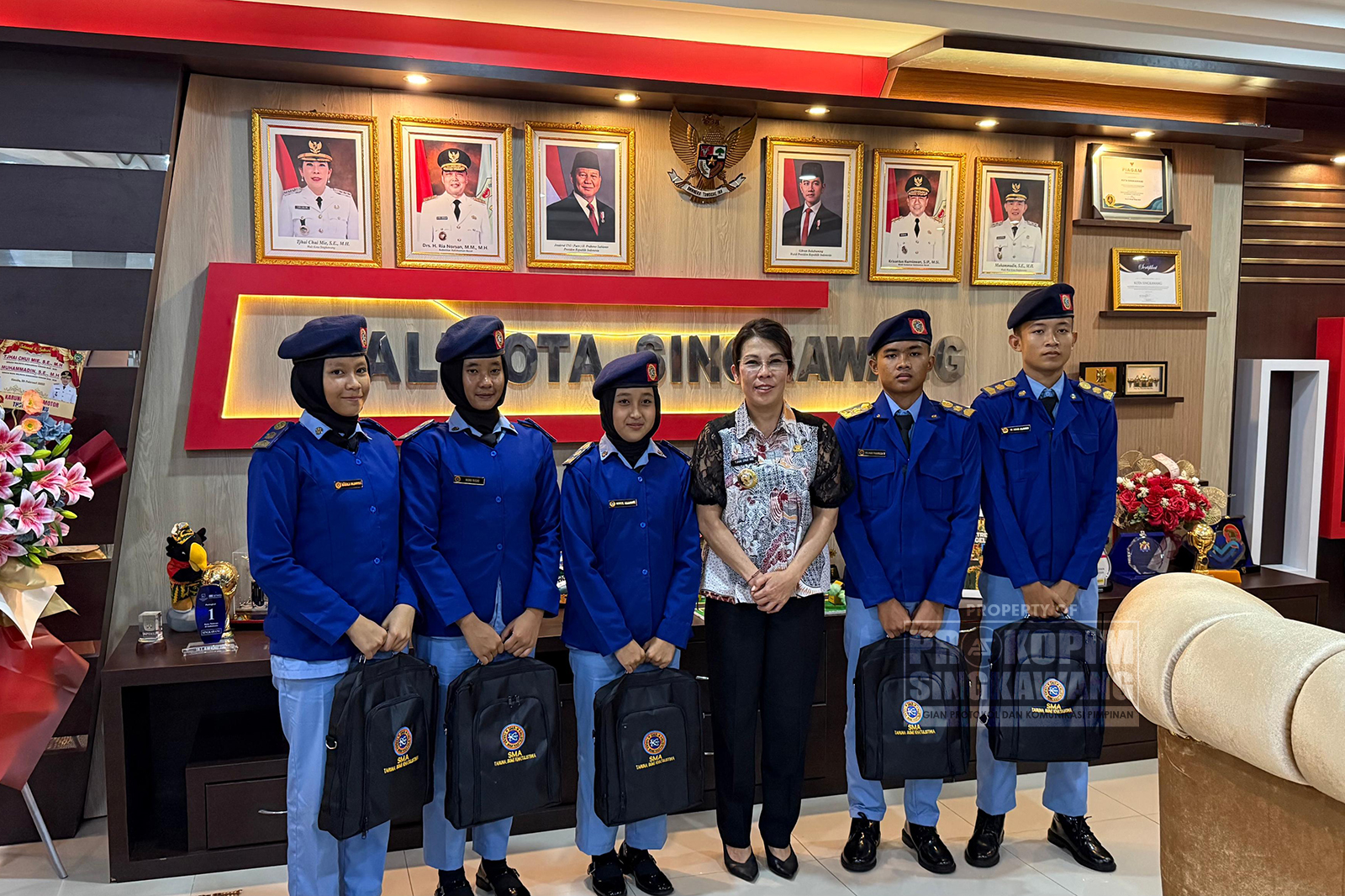 Wali Kota Singkawang, Tjhai Chui Mie, menerima kunjungan Siswa SMK Taruna Khatulistiwa Angkatan 31 Tahun Pelajaran 2025/2026 di Ruang Kerja Wali Kota, Jumat (15/08/2025).