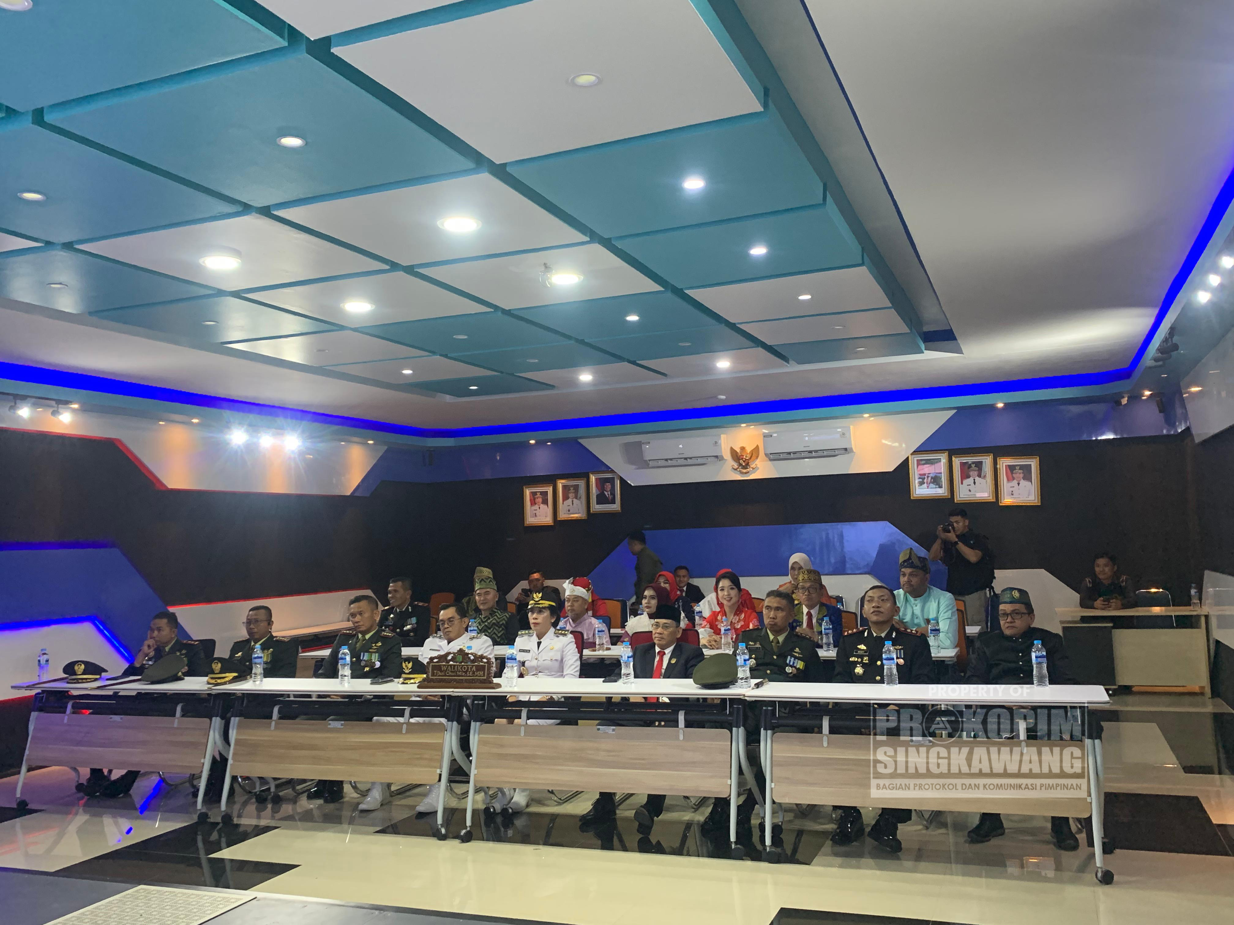 Wali Kota Singkawang, Tjhai Chui Mie bersama Wakil Wali Kota Singkawang Muhammadin, Forkopimda dan Forkopimda Plus mengikuti Upacara Peringatan Detik-detik Proklamasi Kemerdekaan Republik Indonesia ke-80 yang dilangsungkan di Istana Negara secara virtual bertempat di Ruang TCM Kantor Wali Kota Singkawang, Minggu (17/08/2025).