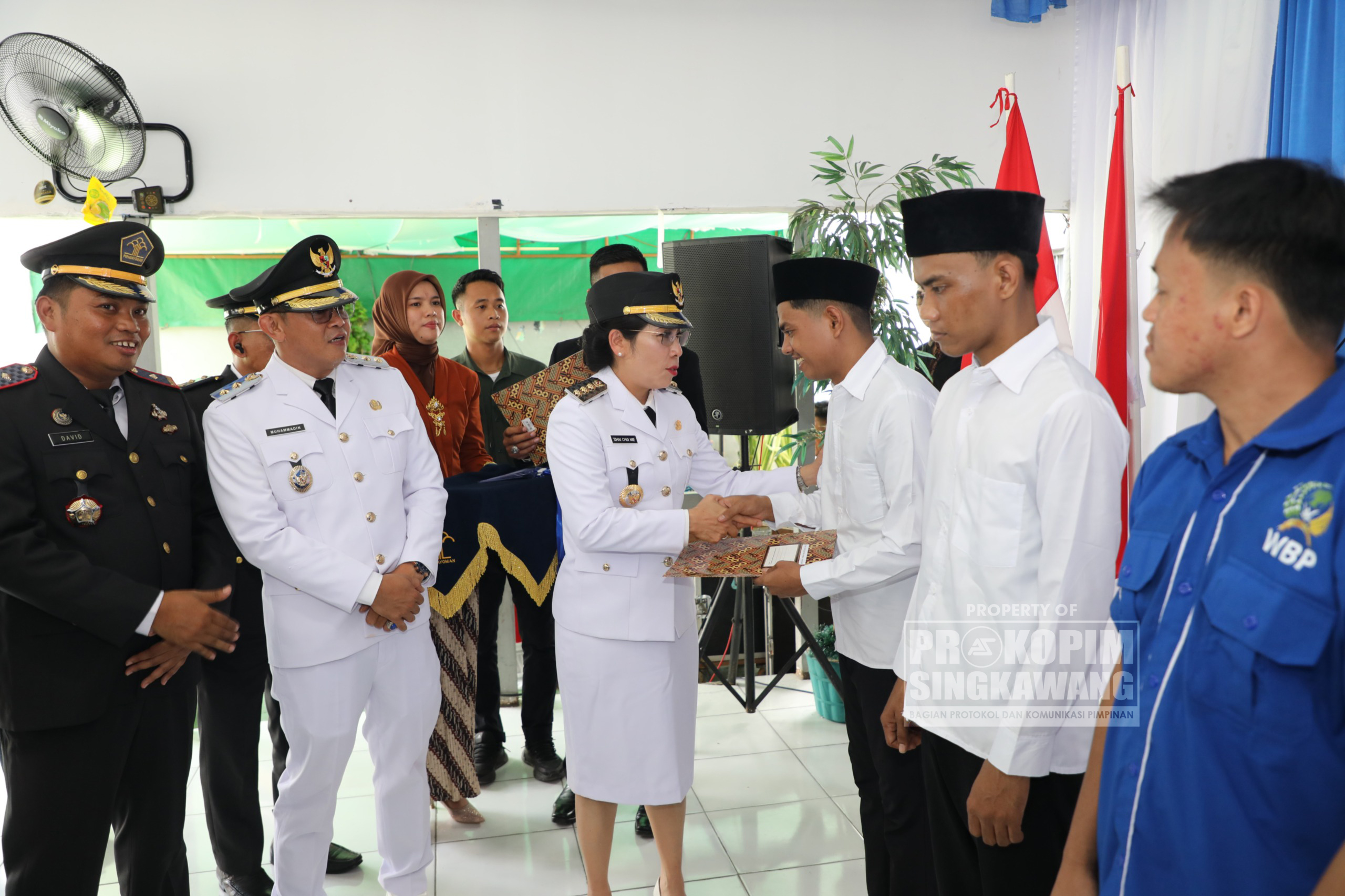 Wali Kota Singkawang, Tjhai Chui Mie, bersama Wakil Wali Kota Muhammadin, serta jajaran Forkopimda menghadiri acara pemberian remisi kepada warga binaan Lembaga Pemasyarakatan (Lapas) Kelas IIB Singkawang dirangkaikan dengan Peletakan Batu Pertama Pembangunan Vihara, Minggu (17/8/2025).