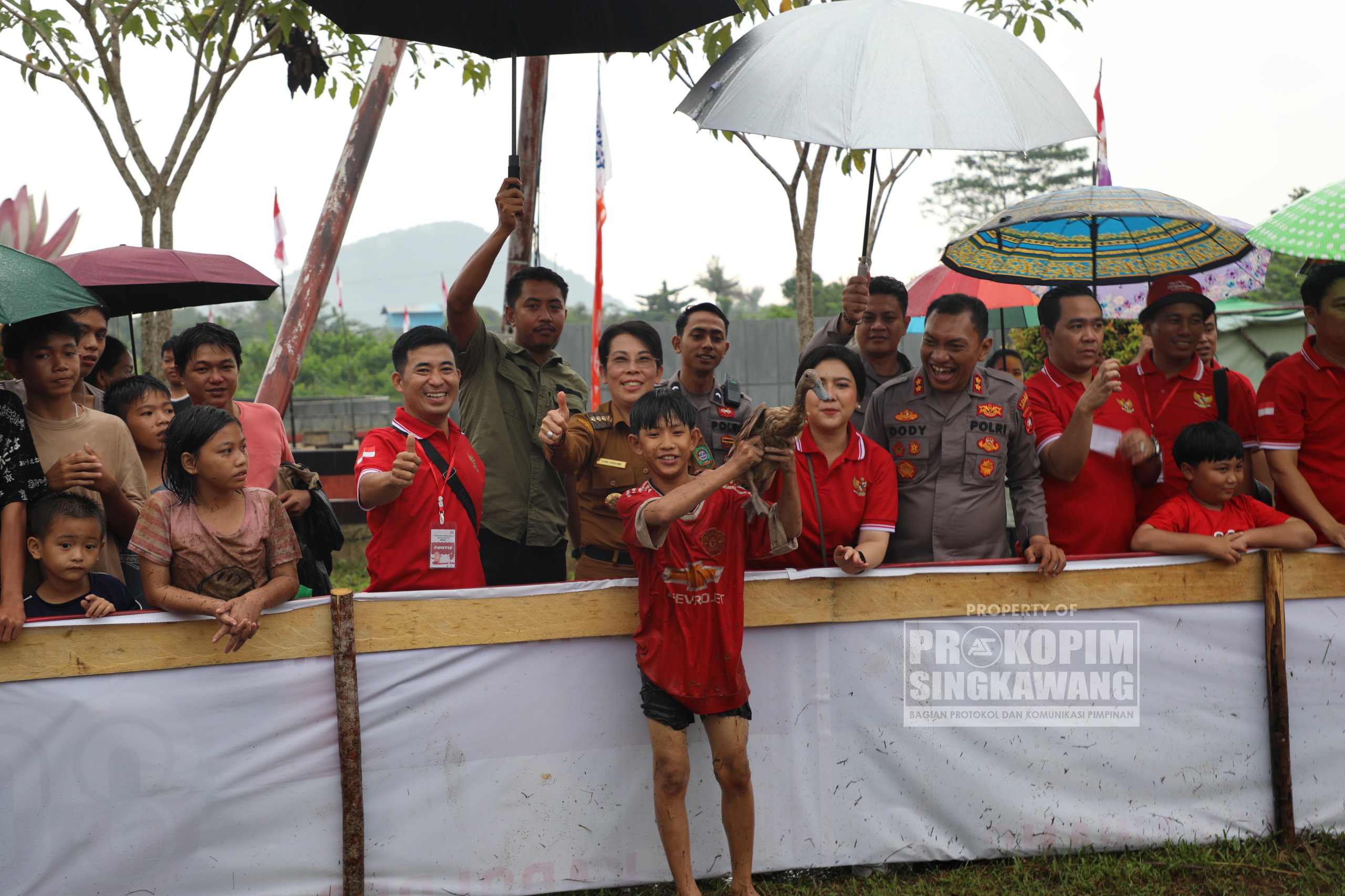 Wali Kota Singkawang, Tjhai Chui Mie, bersama Kapolres dan Ketua Bhayangkari Singkawang, menyaksikan pelaksanaan berbagai perlombaan yang digelar di Lapangan Sepak Bola KS. Tubun, Kelurahan Roban, Kecamatan Singkawang Tengah, Selasa (19/08/2025).