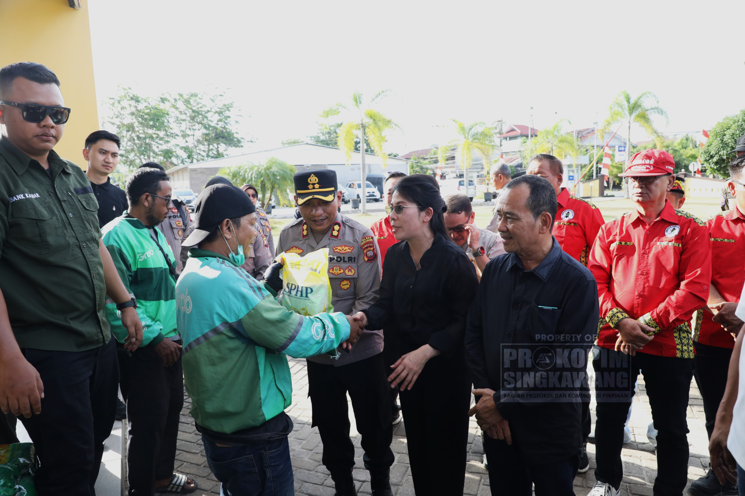 Wali Kota Singkawang, Tjhai Chui Mie, bersama Forkopimda, menggelar Tali Asih bersama Pengemudi Ojek Online se-Kota Singkawang di halaman Polres Singkawang, Minggu (31/08/2025).
