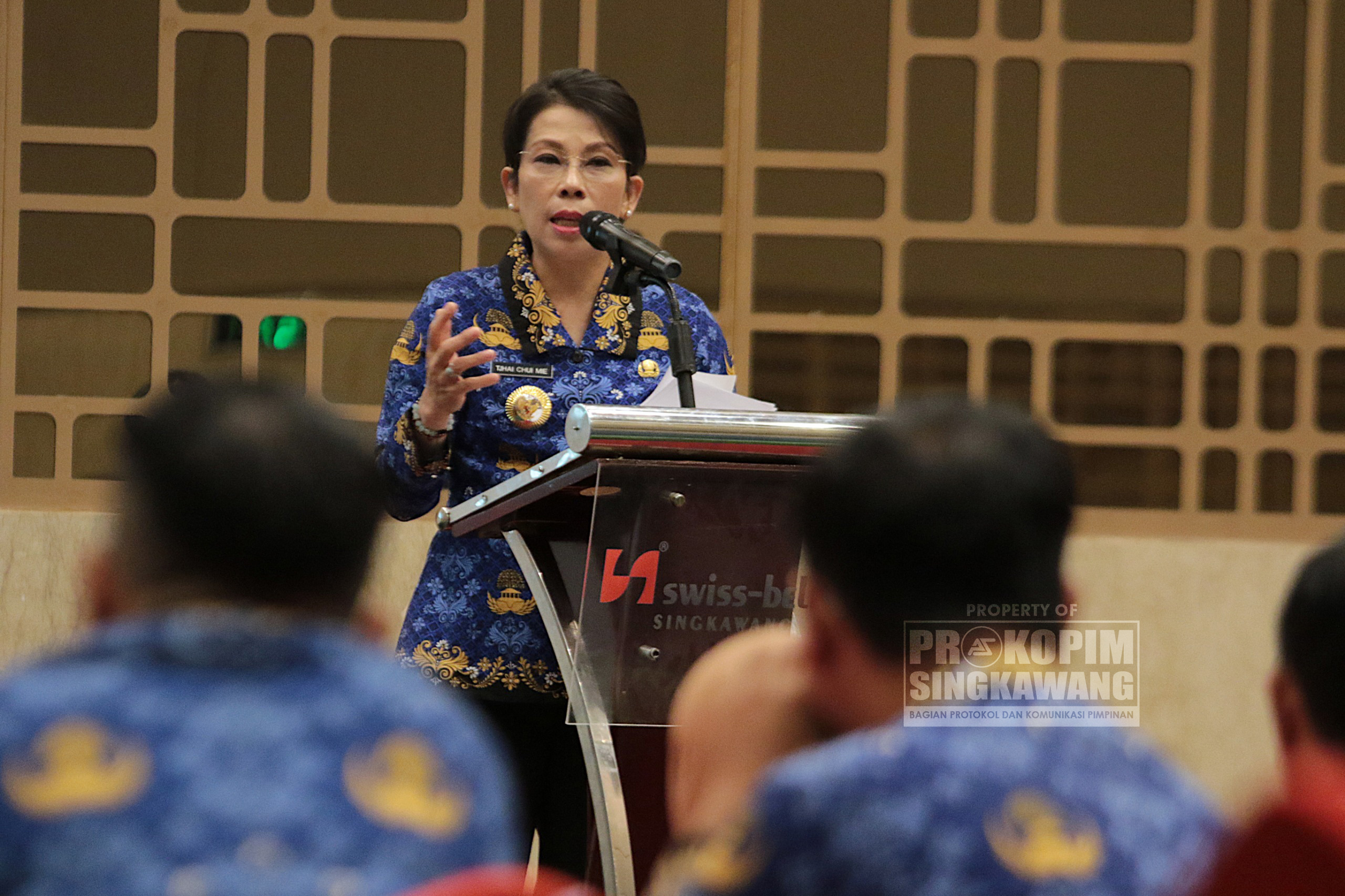Wali Kota Singkawang, Tjhai Chui Mie, secara resmi membuka kegiatan Pelatihan Penyusunan Matriks Tagging Anggaran Kelurahan Berbasis Ekologi (ALAKE) Kota Singkawang yang berlangsung di Ballroom Hotel Swiss Belinn Singkawang, Rabu (17/09/2025).