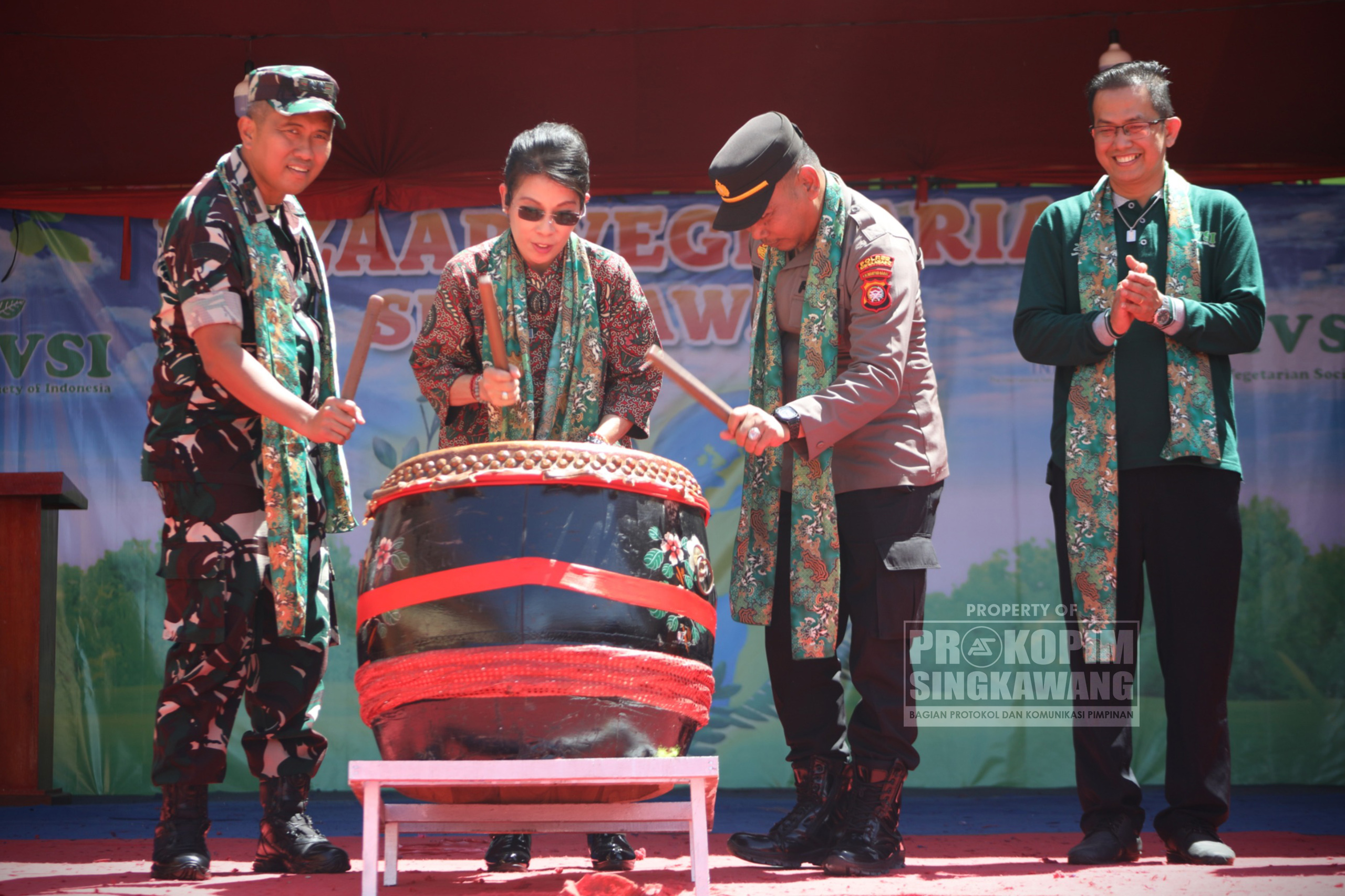 Turut hadir mendampingi dalam kegiatan ini unsur Forum Koordinasi Pimpinan Daerah (Forkopimda) Kota Singkawang dan Pengurus Panita Bazar. Kegiatan yang diinisiasi oleh komunitas dan sekolah Maitreya ini menghadirkan beragam kuliner vegetarian serta produk lokal yang sehat dan ramah lingkungan.