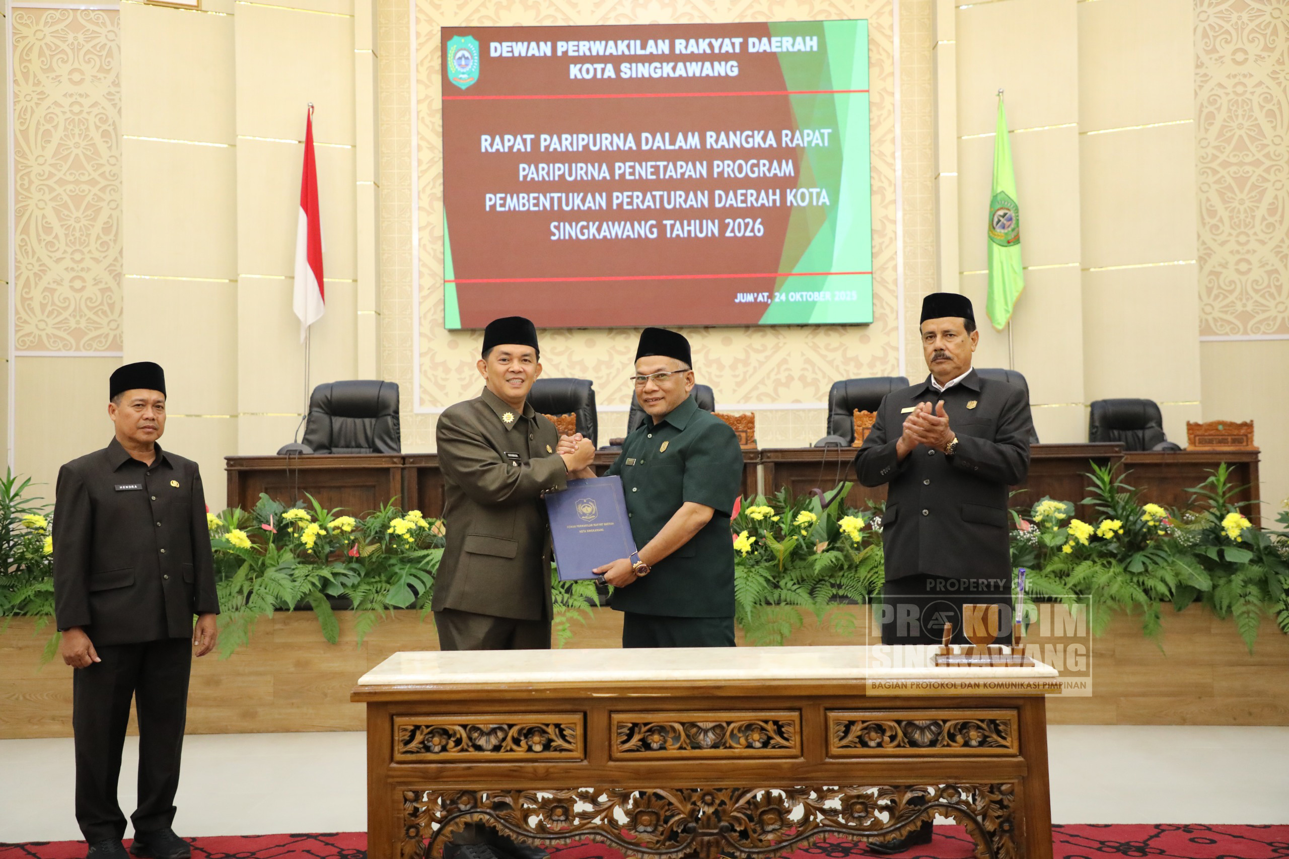 Rapat Paripurna juga menetapkan Keputusan DPRD Kota Singkawang tentang Penetapan Propemperda Tahun 2026, yang kemudian ditandatangani bersama oleh Pemerintah Kota Singkawang yang diwakili Wakil Wali Kota dan Pimpinan DPRD sebagai bentuk persetujuan dan kesepakatan bersama.