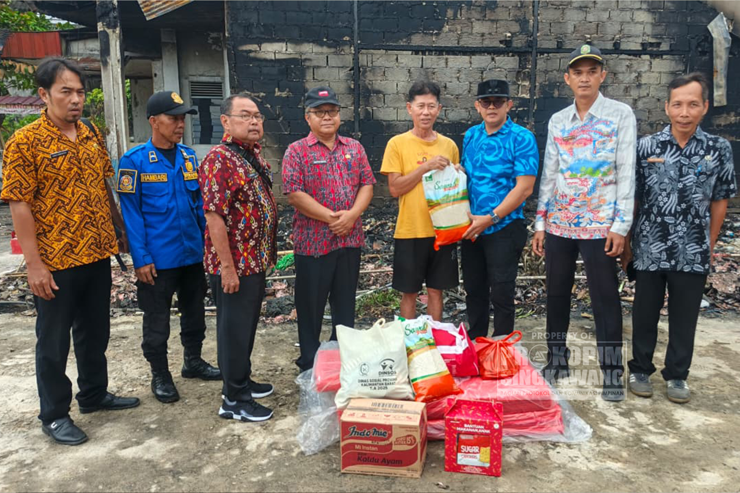 Wakil Wali Kota Singkawang, Muhammadin, didampingi Kepala Dinas Sosial, Pemberdayaan Perempuan dan Perlindungan Anak, Camat Singkawang Barat, serta Lurah Pasiran, menyerahkan bantuan kepada warga yang menjadi korban kebakaran di Jalan G.M. Situt, Gang Senang, Kelurahan Pasiran, Kecamatan Singkawang Barat, Kamis (06/11/2025).