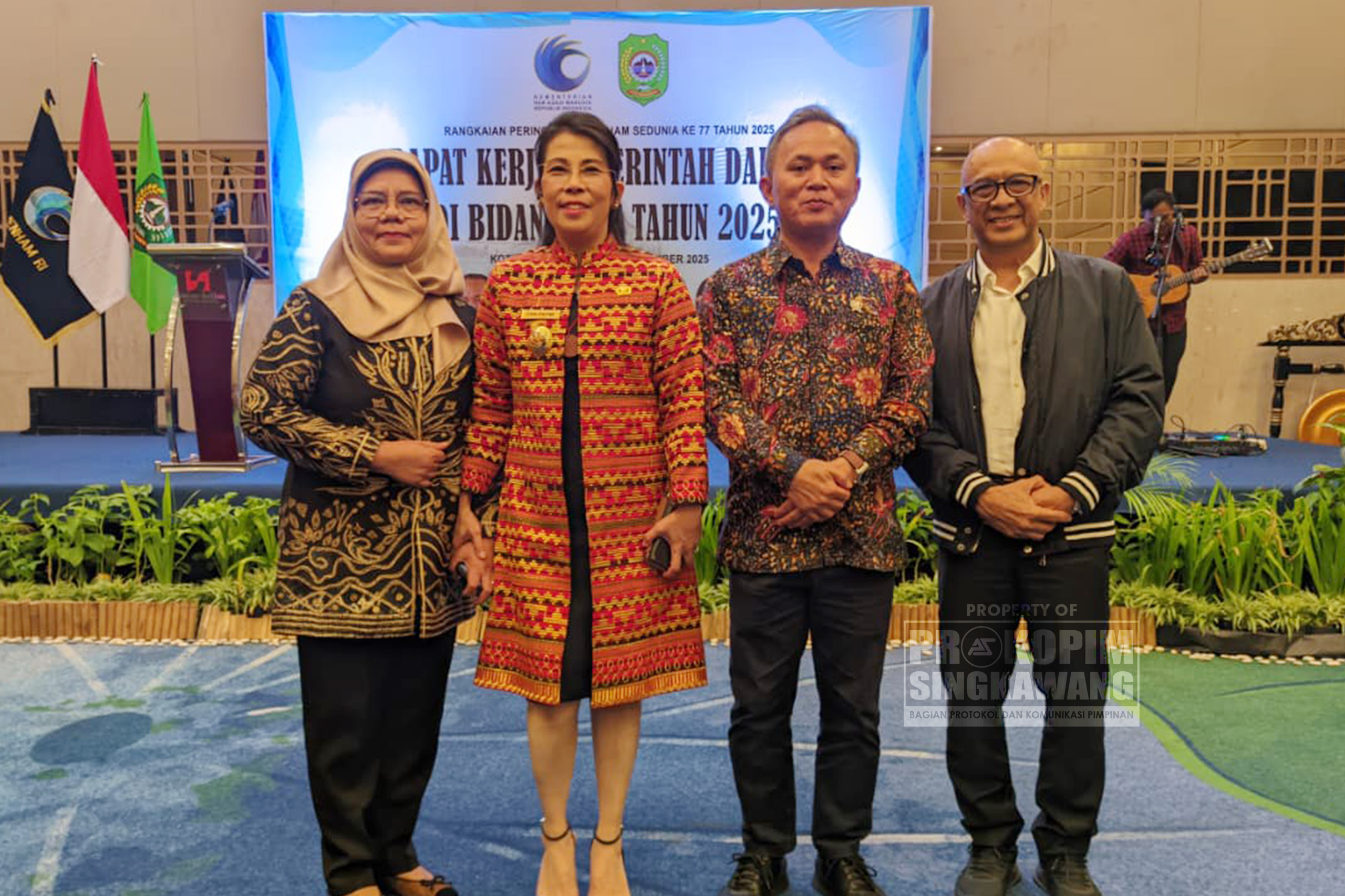 Turut dihadiri oleh Wakil Menteri Hukum dan HAM RI, para Kepala Daerah se-Indonesia atau yang mewakili, Forkopimda Kota Singkawang, pejabat kementerian terkait, serta seluruh peserta Rakerda HAM.