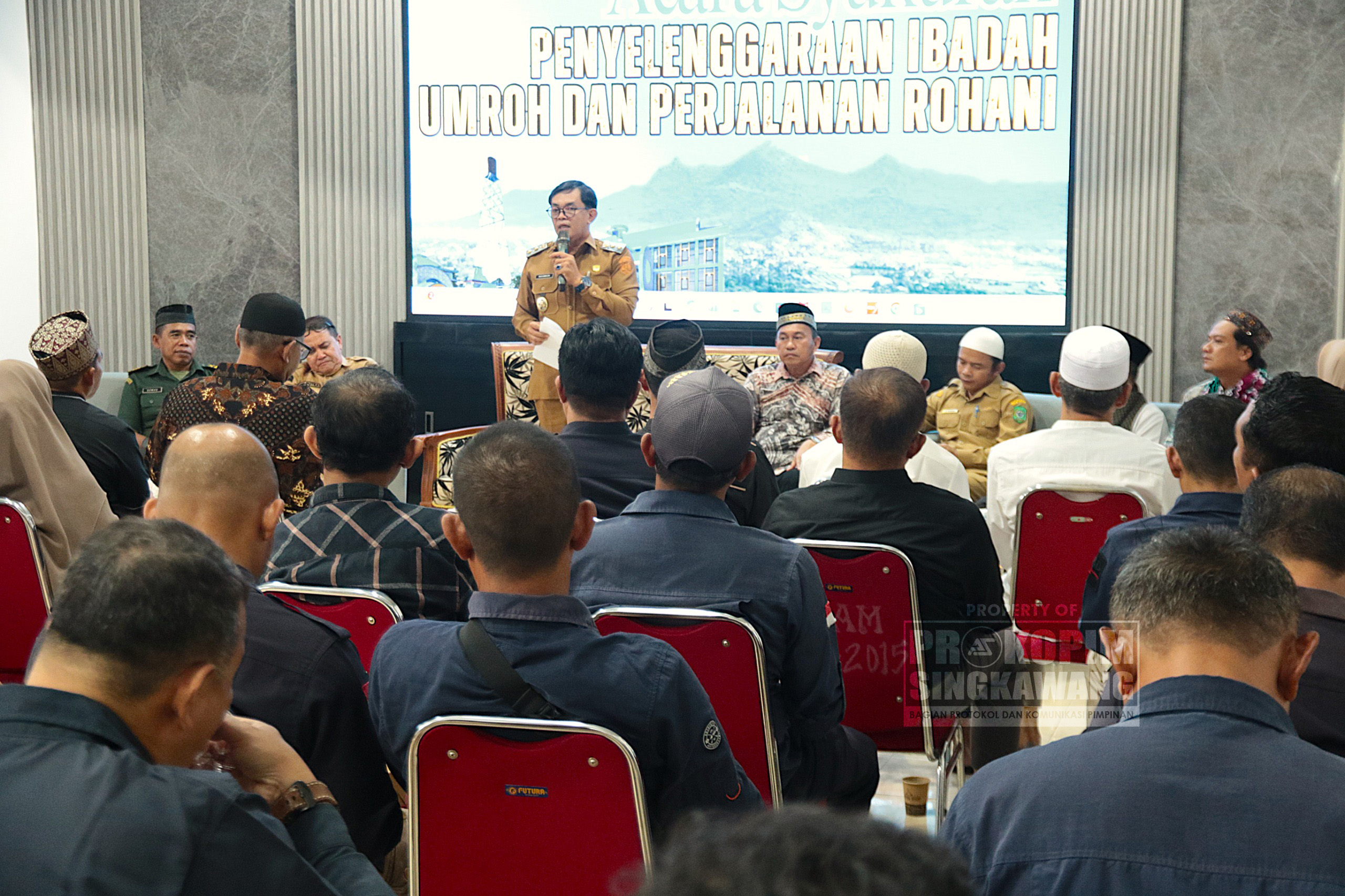 Wakil Wali Kota Singkawang, Muhammadin, menghadiri acara Tasyakuran Umroh bagi Pegawai Purna Tugas Perumda Air Minum Gunung Poteng Singkawang, Selasa (18/11/2025).