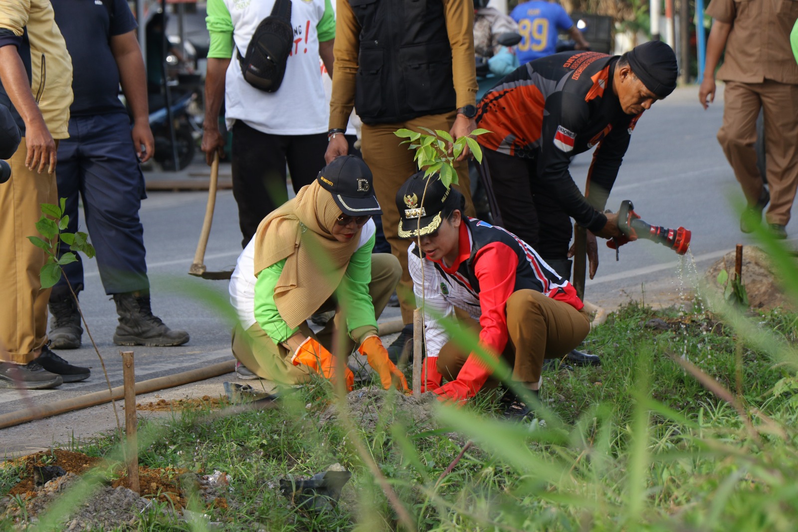 Wali Kota Singkawang, Tjhai Chui Mie, didampingi Kepala Dinas Lingkungan Hidup Kota Singkawang, melaksanakan kegiatan penanaman pohon di sejumlah titik ruas jalan pada Selasa (20/01/2026).