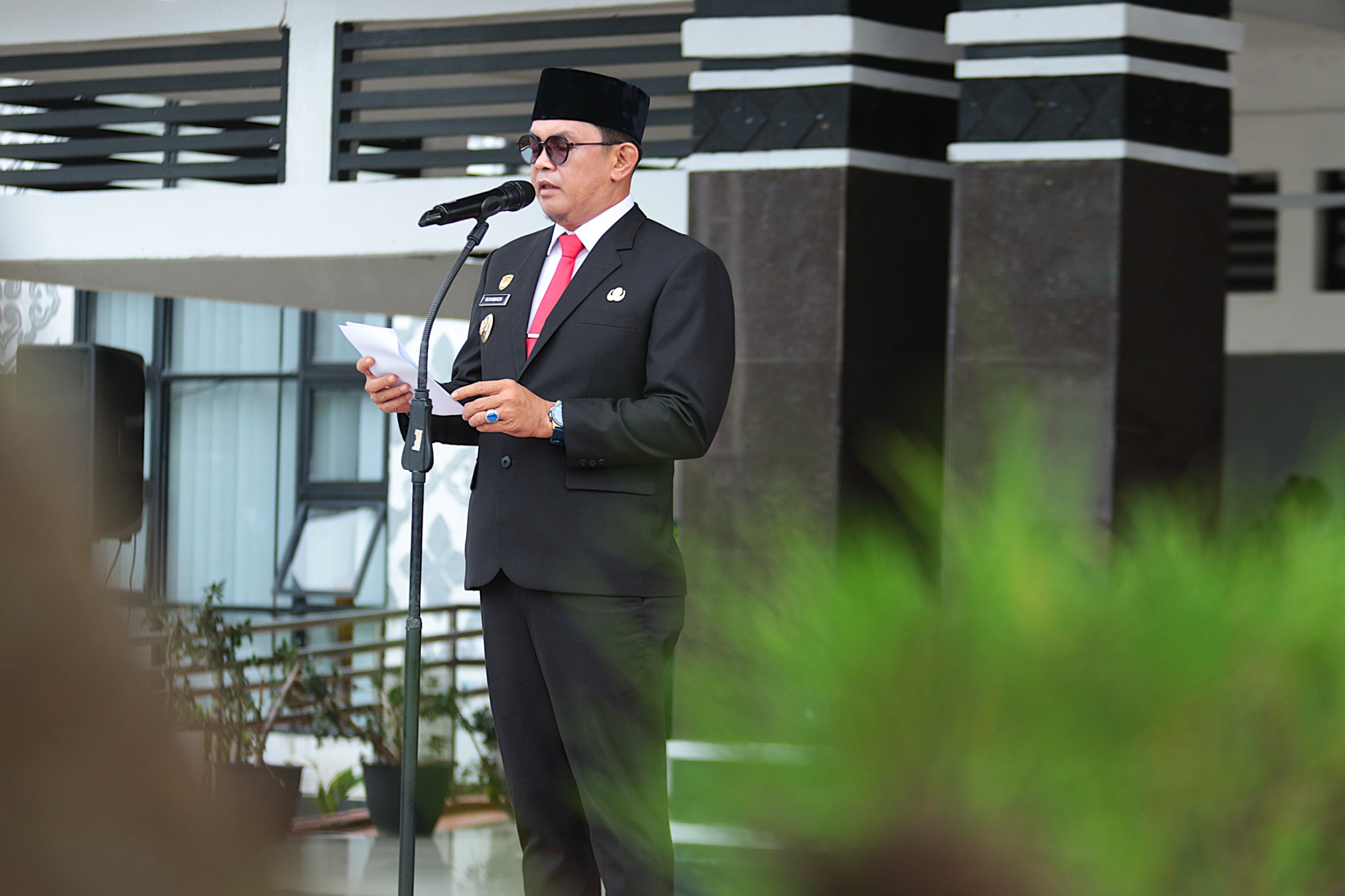 Wakil Wali Kota Singkawang, Muhammadin, bertindak sebagai Inspektur Upacara pada Peringatan Hari Ulang Tahun (HUT) ke-69 Pemerintah Provinsi Kalimantan Barat Tahun 2026 yang digelar di Halaman Kantor Wali Kota Singkawang, Rabu (28/01/2026).